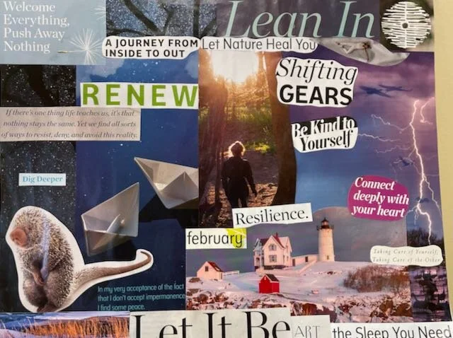 While engaging in the Expressive Arts does help reduce anxiety, improve mood and form connections, in a workshop such as these, there is no diagnosis or defined problem to work on. The “goal” in an Expressive Arts Workshop is to help participants access their own creative spirit to explore their inner world and their innate ability to grow and heal in a safe and supportive environment. Most people find the experience pleasurable, inspiring and calming. The facilitator offers creative prompts or leading questions for participants to explore through expressive mediums such as paint, collage, movement, drawing, writing or sound.