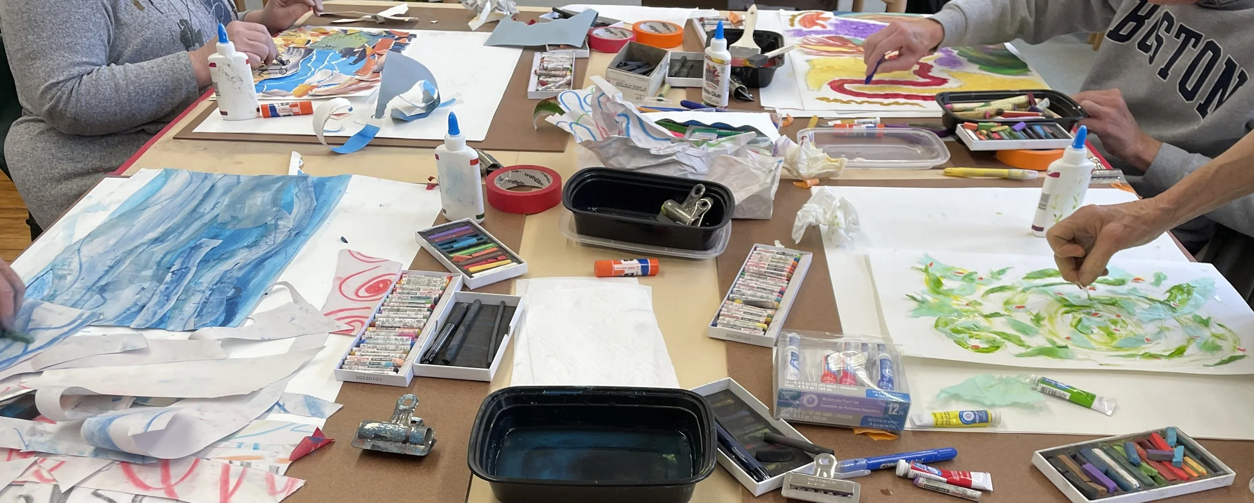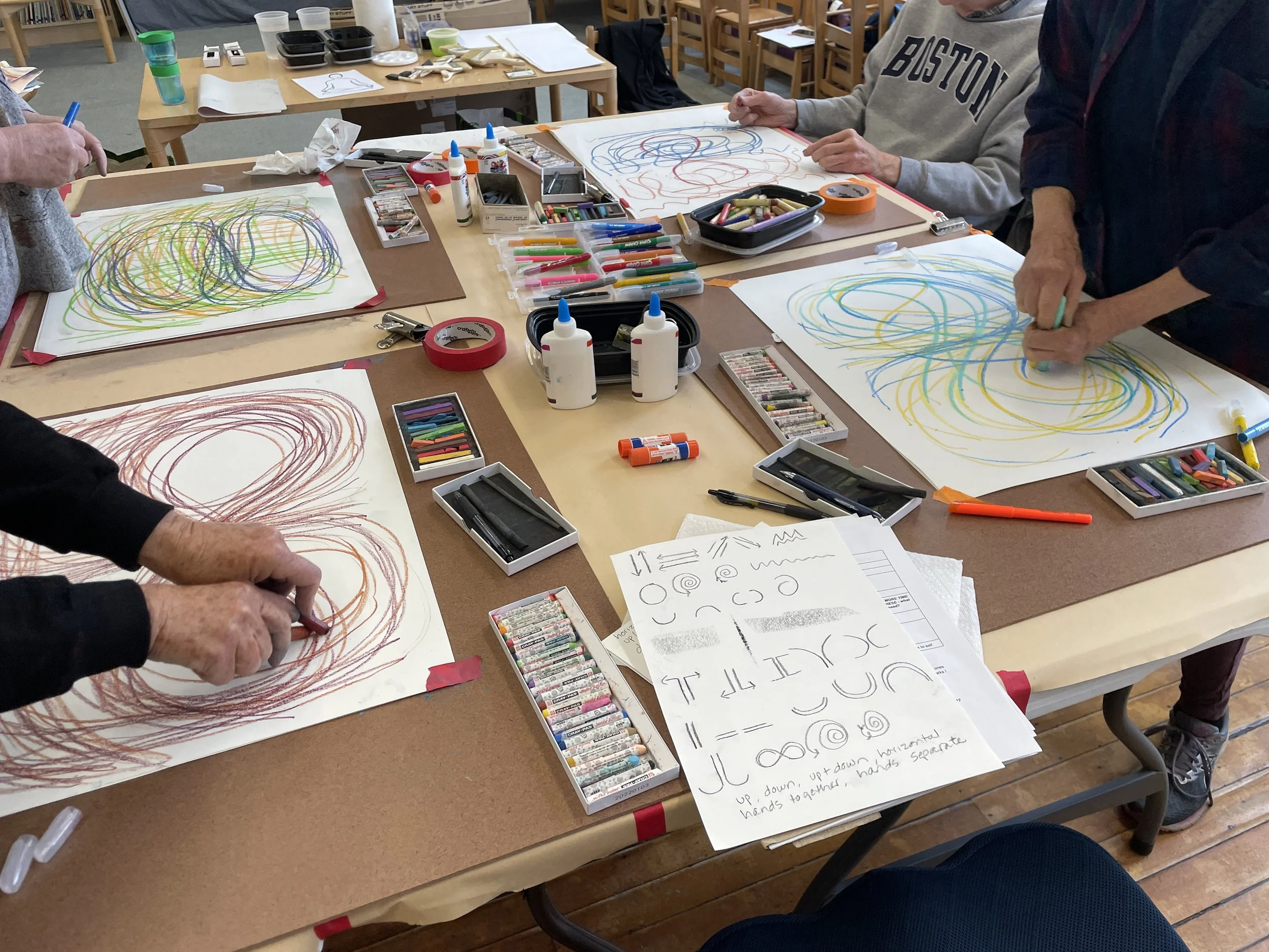 While there might be some basic instruction in the use of art materials so participants feel comfortable using the materials, Expressive Arts Workshops are not art classes and art making techniques such as figure drawing or landscape painting are not taught.